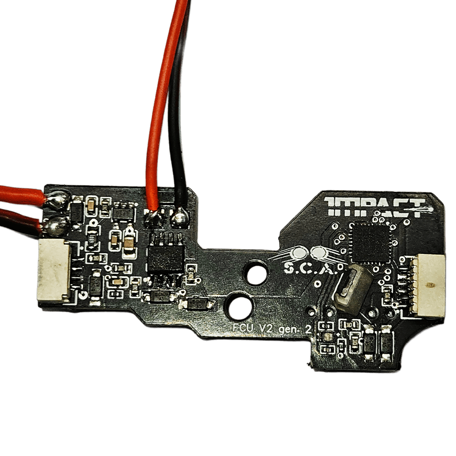 La nostra FCU (Centralina di Controllo Elettronico) è facilmente programmabile grazie a una piccola schedina con pulsanti integrata nella grip della replica. Non è necessario utilizzare strumentazione esterna: tutto il processo di programmazione avviene direttamente tramite questa schedina.